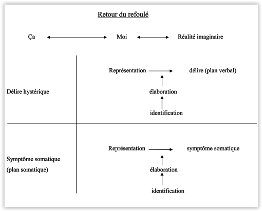13 - Dans la névrose hystérique, l'accès psychotique, qui n'est ni bouffée      délirante ni état confusionnel, a tout de l'acting out, monstration et aveu adressé à l'Autre. (Ce point 13 a été ajouté après la soutenance, il est révélateur de la richesse de mes échanges avec les membres du jury).